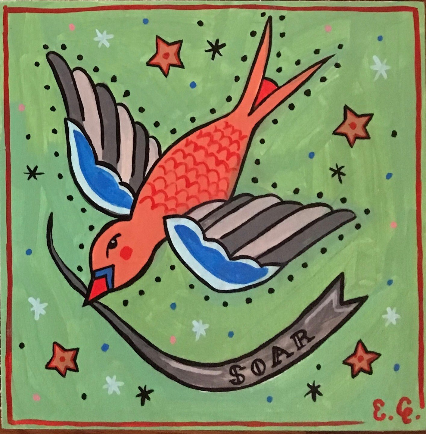Tattoo Bird Painting 8 X 8 Folk Art Etsy Uk